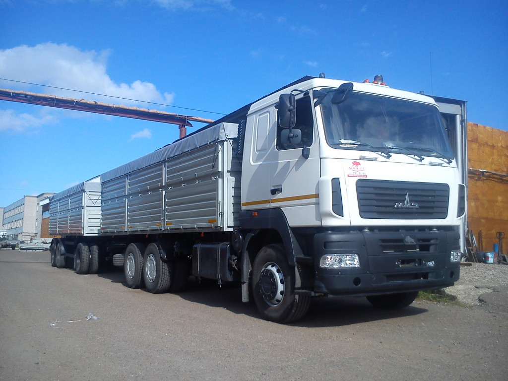 Зерновоз МАЗ 6312С9 с бортовым прицепом